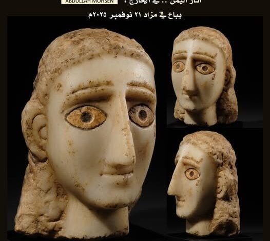 في سياق استمرار تعرُّض القطع الأثرية اليمنية النادرة للنهب والتهريب المنظم في ظل غياب كامل للرقابة الحكومية الفاعلة، كُشف عن عرض مجموعة من التحف اليمنية النادرة للبيع في مزاد “القطع التاريخية النادرة حول العالم” في العاصمة النمساوية “فيينا” بتاريخ 21 نوفمبر 2025، بقيم مالية تصل لمئات الملايين من الدولارات.