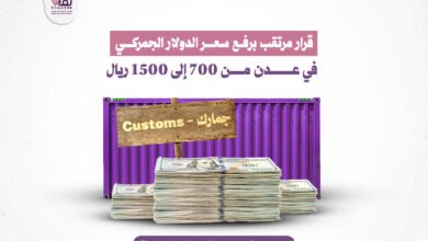 قنبلة سعرية ستضرب جميع المواد والسلع التجارية.. رفع سعر الدولار الجمركي في عدن من 700 إلى 1500 ريال